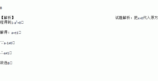 B 【解析】试题解析:把x=0代入原方程得到1-a2=0, 解得:a=±1, ∵a-1≠0, ∴a≠1, 故选B.