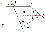 分析:过点C做CP∥AB,根据平行线的判定定理证明AB∥ED,然后根据平行线的性质即可证得.