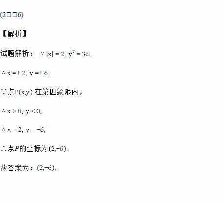 若第四象限内的点P(x,y)满足|x|=2,y2=36,则点P的坐标是________.