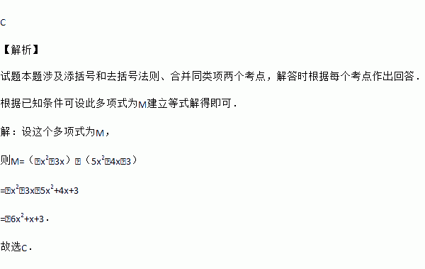 一个多项式加上5x2﹣4x﹣3得﹣x2﹣3x,则这个多项式为( )