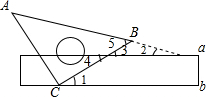 如图,把一块含45°角的三角板的直角顶点靠在长尺(两边a∥b)的一边b上,若∠1=30°,则三角板的斜边与长尺的另一边a的夹角∠2的度数为