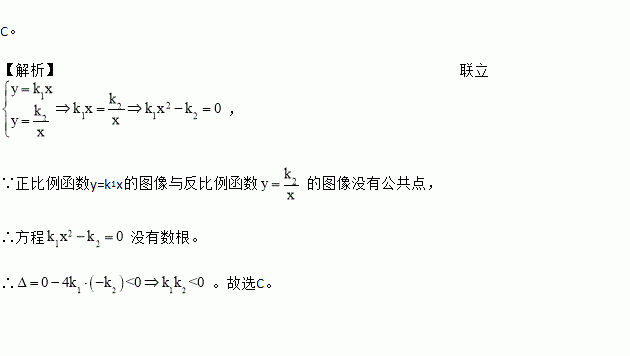 在同一直线坐标系中,若正比例函数y=k1x的图像与反比例函数的图像没有公共点,则
