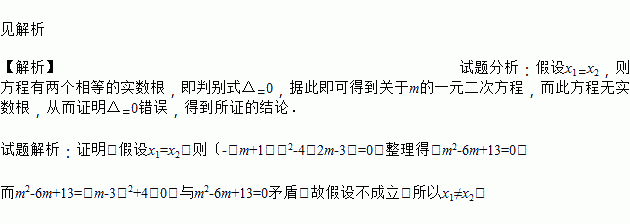 已知:关于x的一元二次方程x2﹣(m+1)x+2m-3=0 有两个实根x1和x2.
