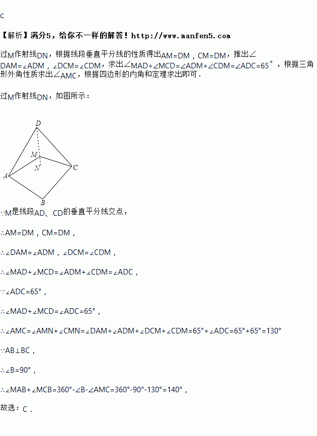如图,是线段、的垂直平分线交点,,,则的大小是( )