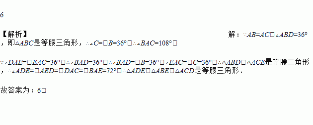 如图所示,在△ABC中,AB=AC,点D、E在BC边上,∠ABD=∠DAE=∠EAC=36°,则图中共有等腰三角形的个数是__.