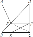 分析 (1)连接PC,证四边形PFCE是矩形,求出EF=PC,证△ABP≌△CBP,推出AP=PC即可;