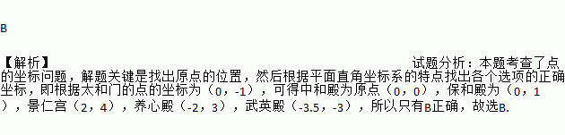 如图是利用平面直角坐标系画出的故宫博物院的主要建筑分布图,若这个坐标系分别以正东、正北方向为x轴、y轴的正方向,表示太和门的点的坐标为(0,-1),表示九龙壁的点的坐标为(4,1),则表示下列宫殿的点的坐标正确的是( )