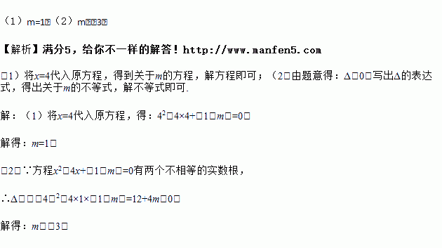 (2)若该方程有两个不相等的实数根,试求m的取值范围.