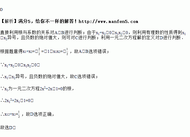 已知一元二次方程2x2+2x﹣1=0的两个根为x1,x2,且x1<x2,下列结论正确的是( )