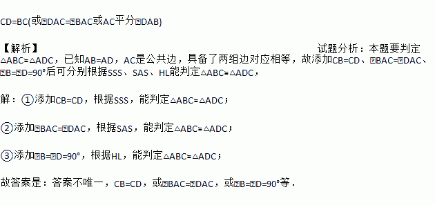 如图,已知AB=AD,要使△ABC≌△ADC,那么可以添加条件 .
