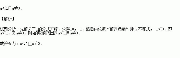 关于x的方程的解是负数,则a的取值范围是 .