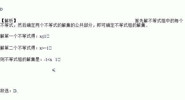 不等式组的解集在数轴上表示正确的是( ).
