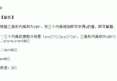 三角形三个内角的度数分别是(x+y)°,(x-y)°,x°,且x>y>0,则该三角形有一个内角为( )