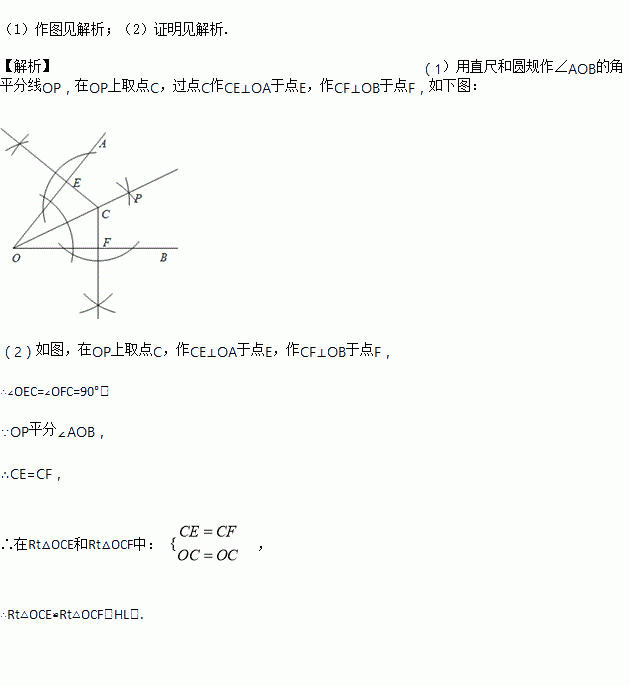 在OP上取一点C,过点C分别作OA、OB的垂线,垂足分别为E、F.求证:△OCE≌△OCF.