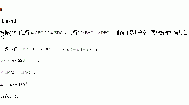 如图是由4个相同的小正方形组成的网格图,其中∠1+∠2等于( )