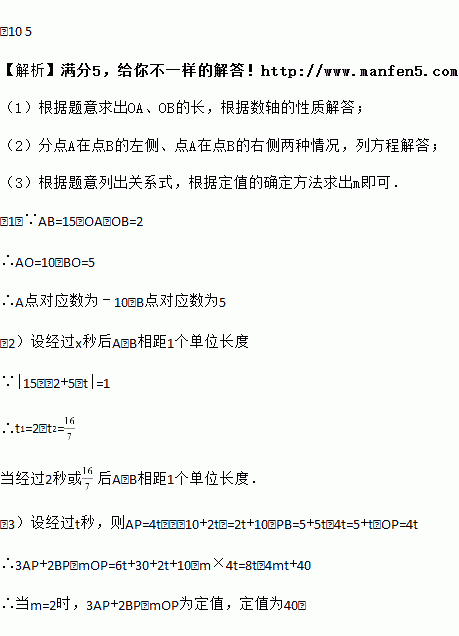 如图,点O为原点,A,B为数轴上两点,AB=15,且OA:OB=2
