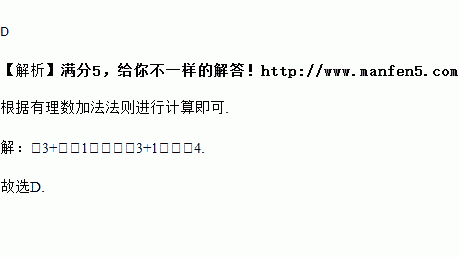 计算-3+(-1)的结果是( )
