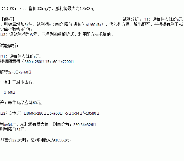 ijÉ̳¡ÒÔÿ¼þ280ÔªµÄ¼Û¸ñ¹º½øÒ»ÅúÉÌÆ·£¬µ±Ã¿¼þÉÌÆ·ÊÛ¼ÛΪ360Ԫʱ£¬Ã¿Ô¿ÉÊÛ³ö60¼þ£¬ÎªÁËÀ©´óÏúÊÛ£¬É̳¡¾ö¶¨²ÉÈ¡Êʵ±½µ¼ÛµÄ·½Ê½´ÙÏú£¬¾µ÷²é·¢ÏÖ£¬Èç¹ûÿ¼þÉÌÆ·½µ¼Û1Ôª£¬ÄÇôÉ̳¡Ã¿Ô¾ͿÉÒÔ¶àÊÛ³ö5¼þ.