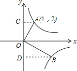 分析 (1)过A作AC⊥y轴于C,过B作BD⊥y轴于D,于是得到△AOC∽△BOD,设B(m,-$\frac{6}{m}$),得到OD=$\frac{6}{m}$,BD=m,根据A(1,2),得到AC=1,OC=2,根据相似三角形的性质列方程即可得到结论;