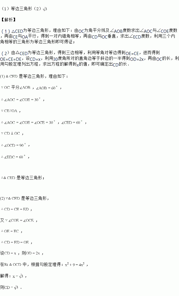 如图,,OC平分,C为角平分线上一点,过点C作,垂足为C,交OB于点D,交OB于点E.