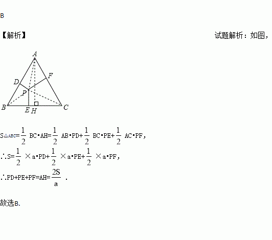 已知等边△ABC的边长为a,面积为S,点P是△ABC内任意一点,则点P到△ABC三边距离之和等于( )