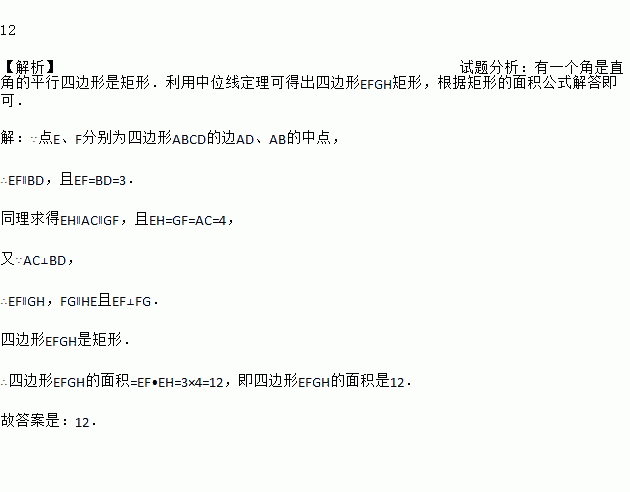 如图,在四边形ABCD中,对角线AC⊥BD,垂足为O,点E,F,G,H分别为AD,AB,BC,CD的中点.若AC=8,BD=6,则四边形EFGH的面积为________.