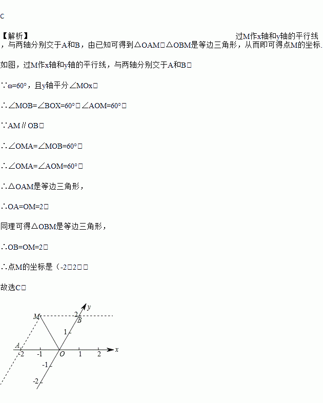 ,OM=2,则点M的坐标是( )![]()