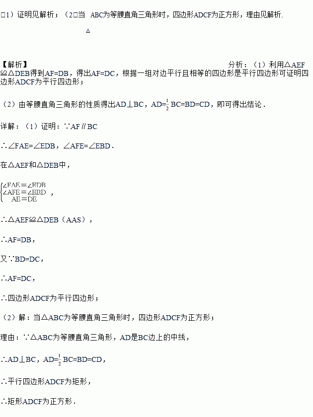 (2)当△ABC满足什么条件时,四边形ADCF为正方形,请你添加适当的条件并证明你的结论.