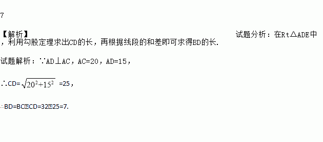 如图,△ABC中,AB=AC=20,BC=32,D是BC上一点,AD=15,且AD⊥AC,求BD长.