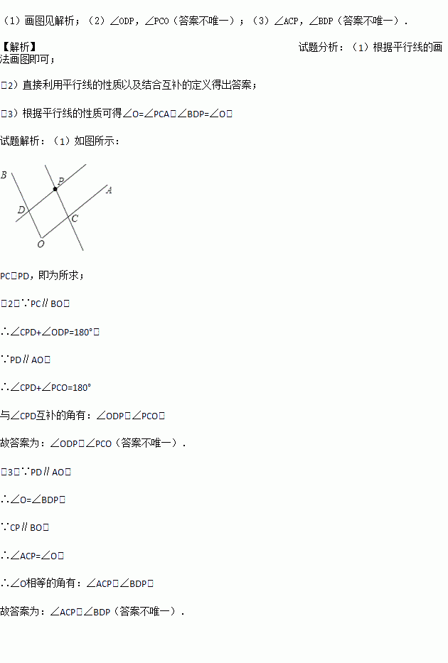 (1)过点P画PC∥OB交OA于点C,画PD∥OA交OB于点D.