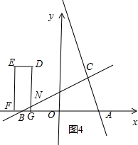 ③点B在EF的右边,点B在线段DG的左侧(或在线段DG上),如图4所示.![]()