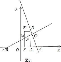 点评 本题考查了一次函数的应用、三角形的面积公式、梯形的面积公式以及解一元一次方程,解题的关键是:(1)求出A、B、C三点的坐标;(2)求出D、E、F三点的坐标;(3)依照运动过程分段考虑.本题属于中档题,(1)(2)难度不大;(3)利用矩形运动过程中图形的不同分三部分考虑,期间用到了分割图形求面积,分割法是我们中学阶段常用到的求面积的手段,在日常学习中应加强练习.