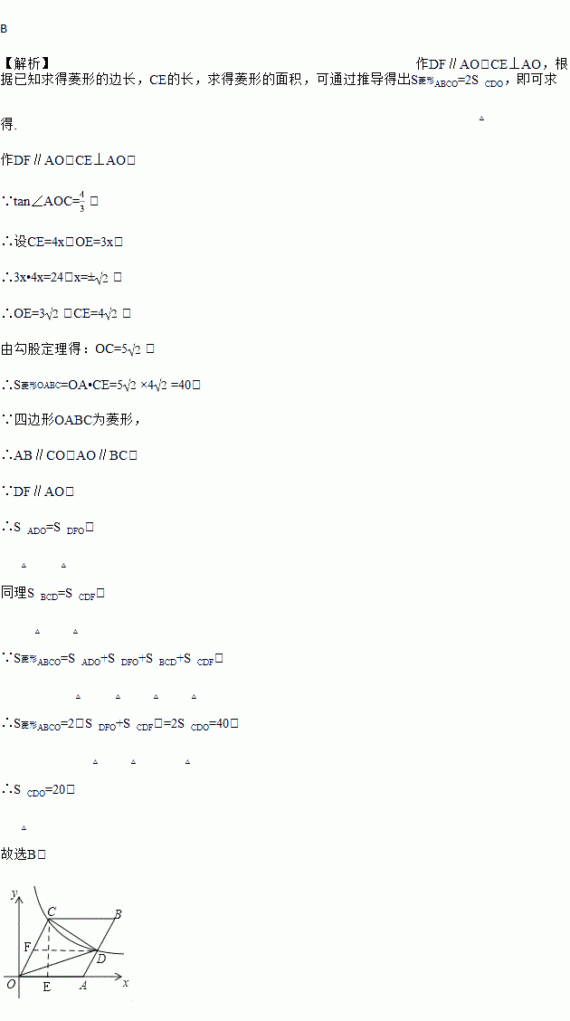 如图,菱形OABC的一边OA在x轴的正半轴上,O是坐标原点,tan∠AOC=