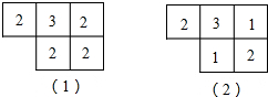 解:根据题意,构成几何体所需正方体最多情况如图(1)所示,构成几何体所需正方体最少情况如图(2)所示: