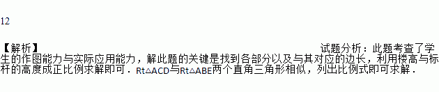 如图,利用标杆BE测量建筑物的高度,标杆BE高1.5m,测得AB=2m,BC=14m,则楼高CD为_______m.