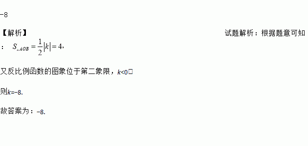 如图,点A为反比例函数图象上一点,过A做轴于点B,连接OA,△ABO的面积为4,则= .