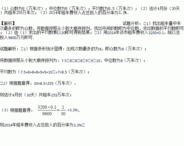 (2)用(1)中的平均数估计4月份(30天)该市共租车多少万车次;