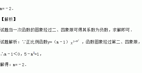 已知正比例函数y=(m﹣1)的图象在第二、四象限,求m的值.
