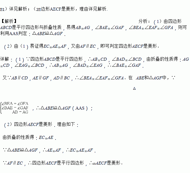 如图,将?ABCD沿EF折叠,恰好使点C与点A重合,点D落在点G处,连接AC、CF.