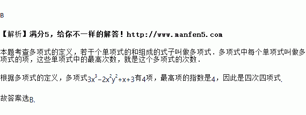 A. 三次四项式 B. 四次四项式 C. 三次三项式 D. 四次三项式