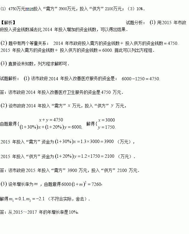 (2)该市政府2015年投入“需方”和“供方”的资金是多少万元?