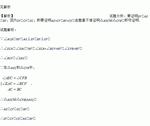 如图,在△ABC中,∠ACB=90°,AC=BC,直线l经过顶点C,过A、B两点分别作l的垂线AE、BF,E、F为垂足.当直线l不与底边AB相交时,