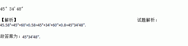 45°34'48" 【解析】试题解析:45.58°=45°+60′×0.58=45°+34′+60″×0.8=45°34′48″. 故答案为:45°34′48″.