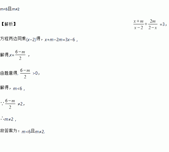 若关于x的分式方程=3的解为正实数,则实数m的取值范围是____________。