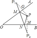分析:(1)过点P分别作OA,OB的垂线,分别交AO,AB于点G,H,截取GP1=GP,HP2=HP;