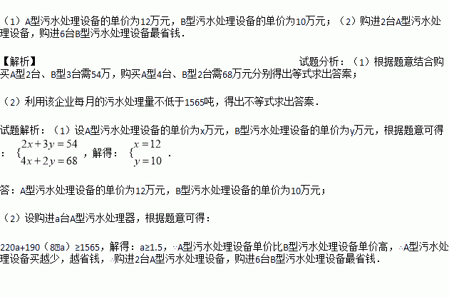 (1)求出A型、B型污水处理设备的单价;