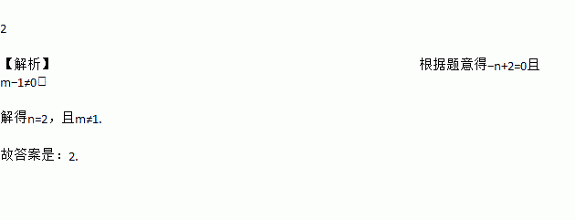 已知函数y=(m-1)x-n+2是正比例函数,则n= _________