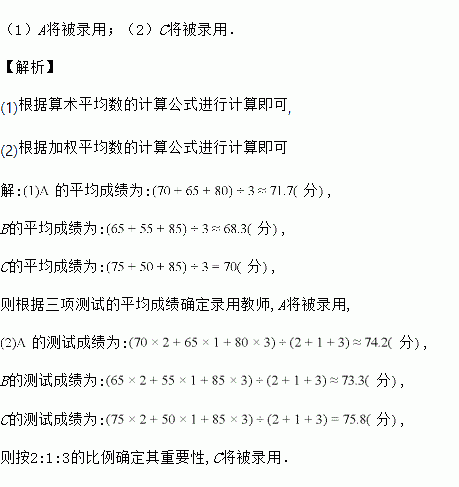 (1)如果根据三项测试的平均成绩确定录用教师,那么谁将被录用?