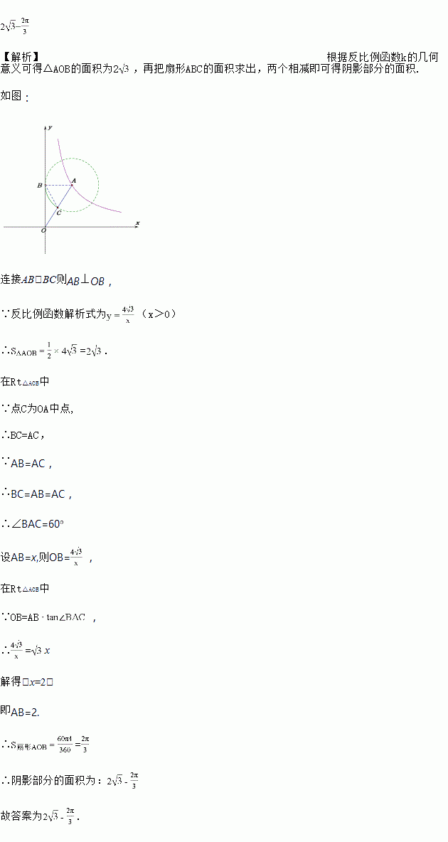 的图象上,连接OA交⊙A于点C,且点C为OA中点,则图中阴影部分的面积为________.