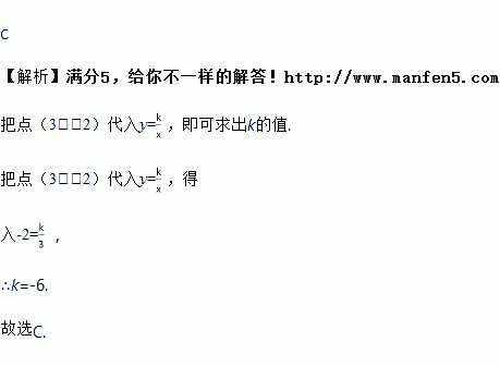 已知反比例函数y=的图象经过点(3,﹣2),则k的值是( )